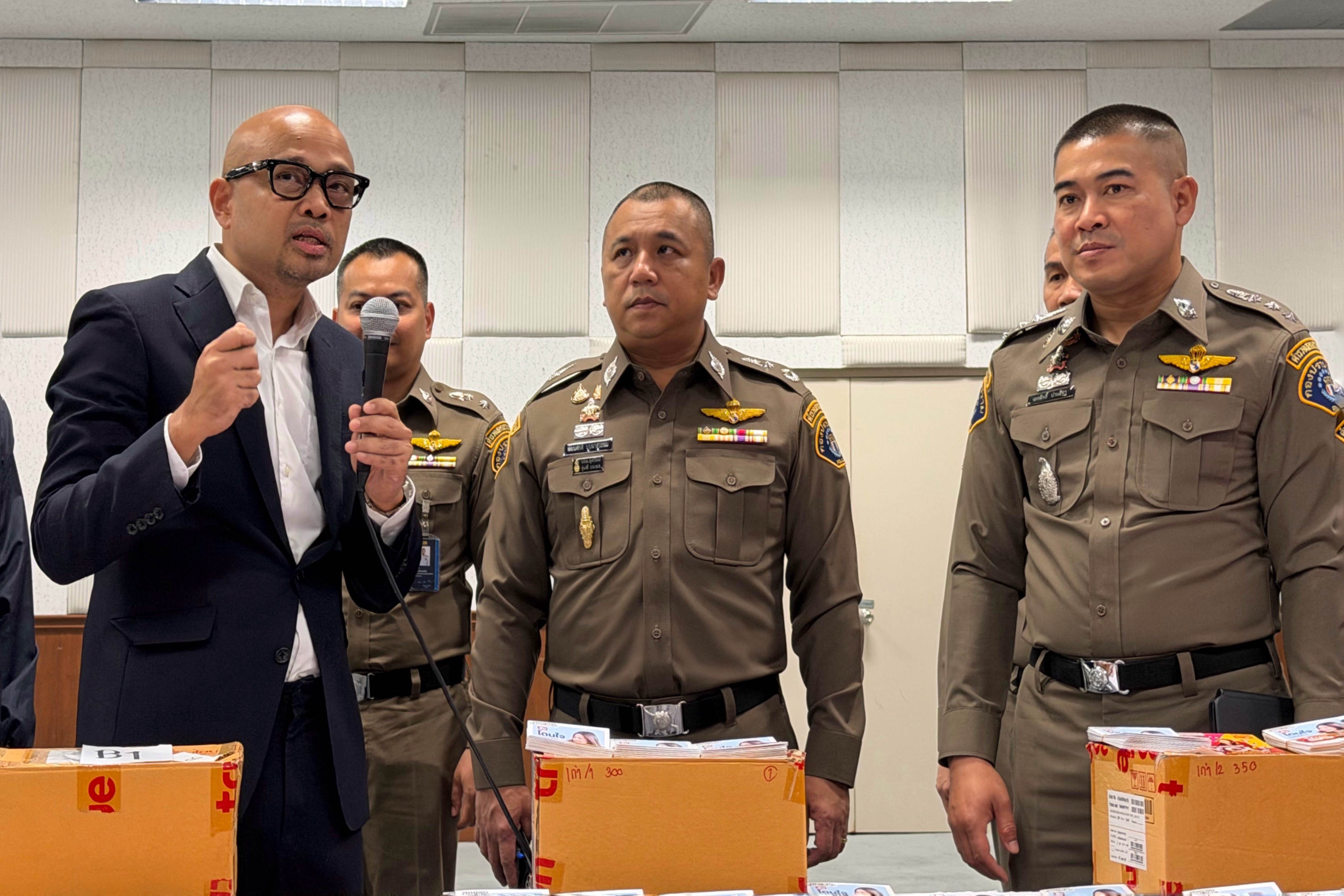 พล.ต.ต.พัฒนศักดิ์ บุบผาสุวรรณ ผบก.ป. พร้อมกับ พ.ต.อ.เอกสิทธิ์ ปานสีทา ผกก.4 บก.ป. และกองบัญชาการตำรวจสอบสวนกลาง