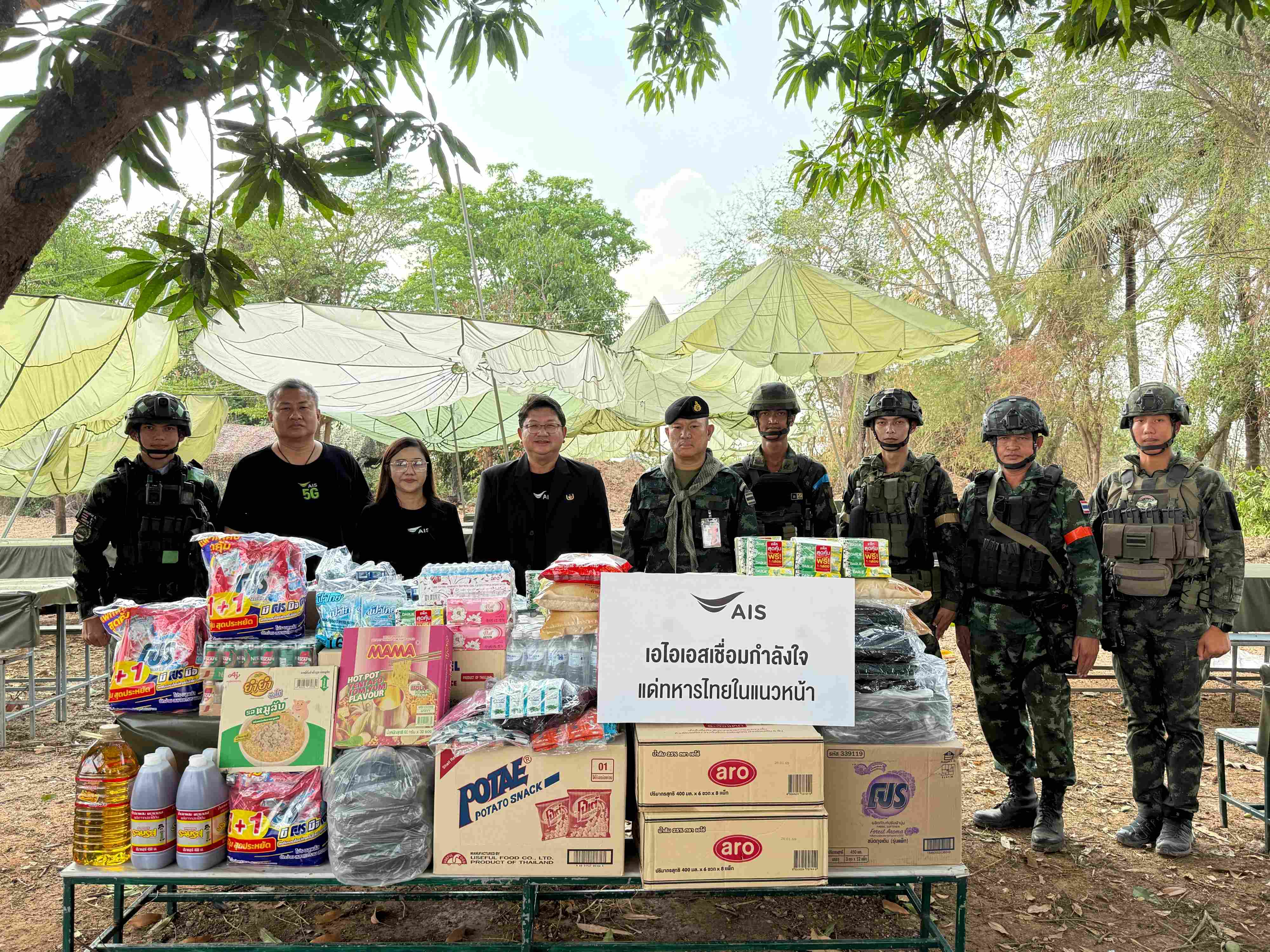 นอกจากการสนับสนุนด้านการสื่อสารแล้ว AIS และกองกำลังบูรพา ยังได้ร่วมกันลงพื้นที่ชุมชนบ้านหนองจาน อำเภอโคกสูง จังหวัดสระแก้ว ส่งมอบสิ่งของอุปโภคบริโภคแก่ประชาชนในพื้นที่ เพื่อเป็นขวัญและกำลังใจ สร้างรอยยิ้มและความอบอุ่นให้กับคนในชุมชน สะท้อนเจตนารมณ์ในการดูแลทั้งกำลังพลและประชาชนชายแดนไปพร้อมกัน