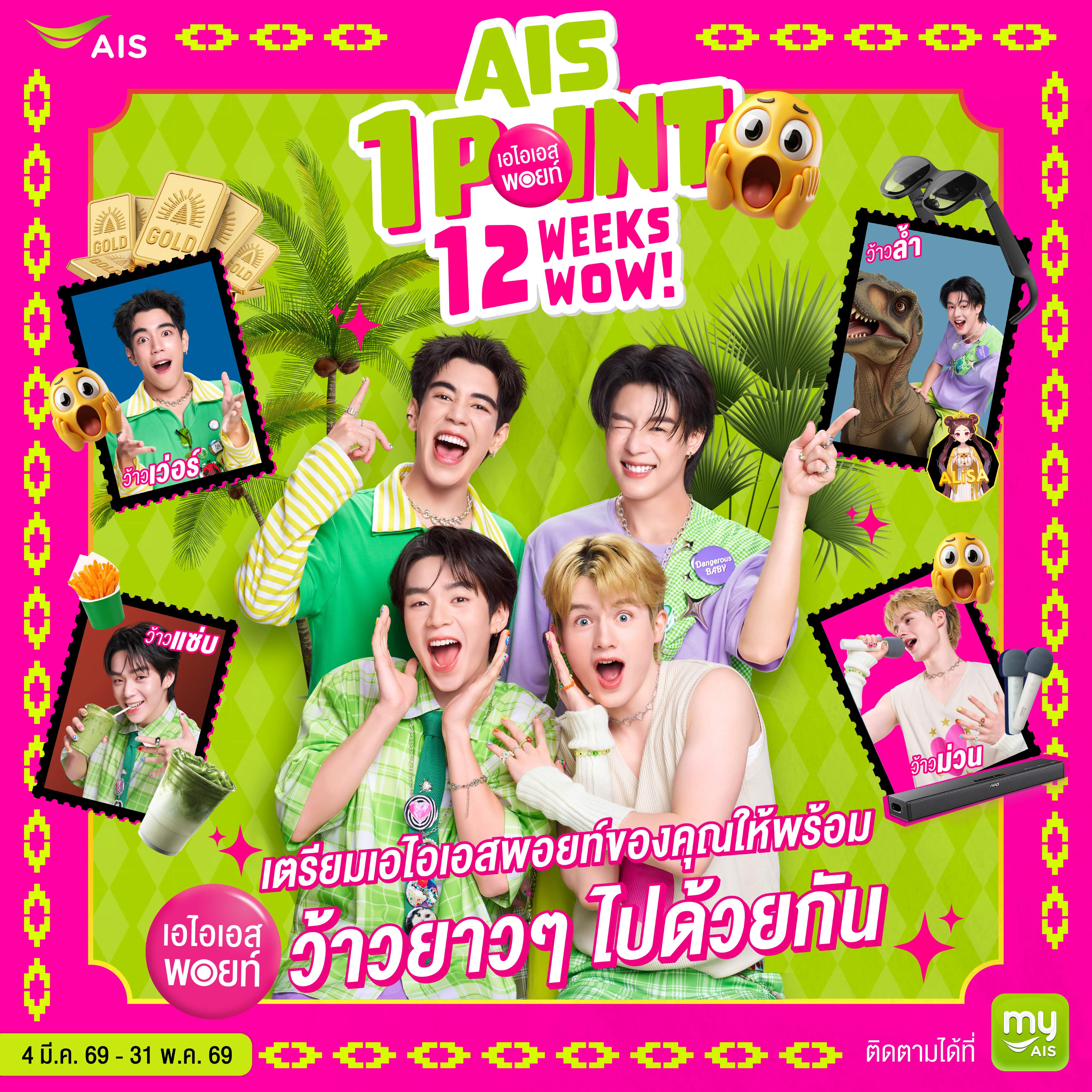 ติดตามรายละเอียดแคมเปญ “AIS 1 POINT 12 WEEKS 12 WOW!” และของรางวัลประจำสัปดาห์ได้ทางแอป