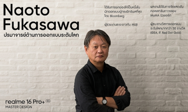 นอกจากการพัฒนาด้านกล้องแล้ว realme ยังให้ความสำคัญกับงานดีไซน์ระดับพรีเมียม โดยครั้งนี้ได้ร่วมงานกับ Naoto Fukasawa นักออกแบบระดับโลกเป็นครั้งแรกใน realme Number Series เพื่อสร้างสรรค์แนวคิดดีไซน์ใหม่ที่เรียกว่า Urban Wild Design ซึ่งผสานแรงบันดาลใจจากธรรมชาติเข้ากับความประณีตของงานออกแบบในเมืองใหญ่ได้อย่างลงตัว แนวคิดนี้เกิดจากการสำรวจ “พื้นที่แห่งอิสรภาพ” ของคนรุ่นใหม่ท่ามกลางชีวิตเมืองที่เร่งรีบ ถ่ายทอดผ่านพื้นผิว วัสดุ และโทนสีที่สะท้อนความงดงามตามธรรมชาติ เช่น สี Master Gold ที่ได้รับแรงบันดาลใจจากทุ่งข้าวสีทอง และ Master Grey ที่สะท้อนพื้นผิวของหินแม่น้ำที่ถูกขัดเกลาด้วยกระแสน้ำอย่างเป็นธรรมชาติ