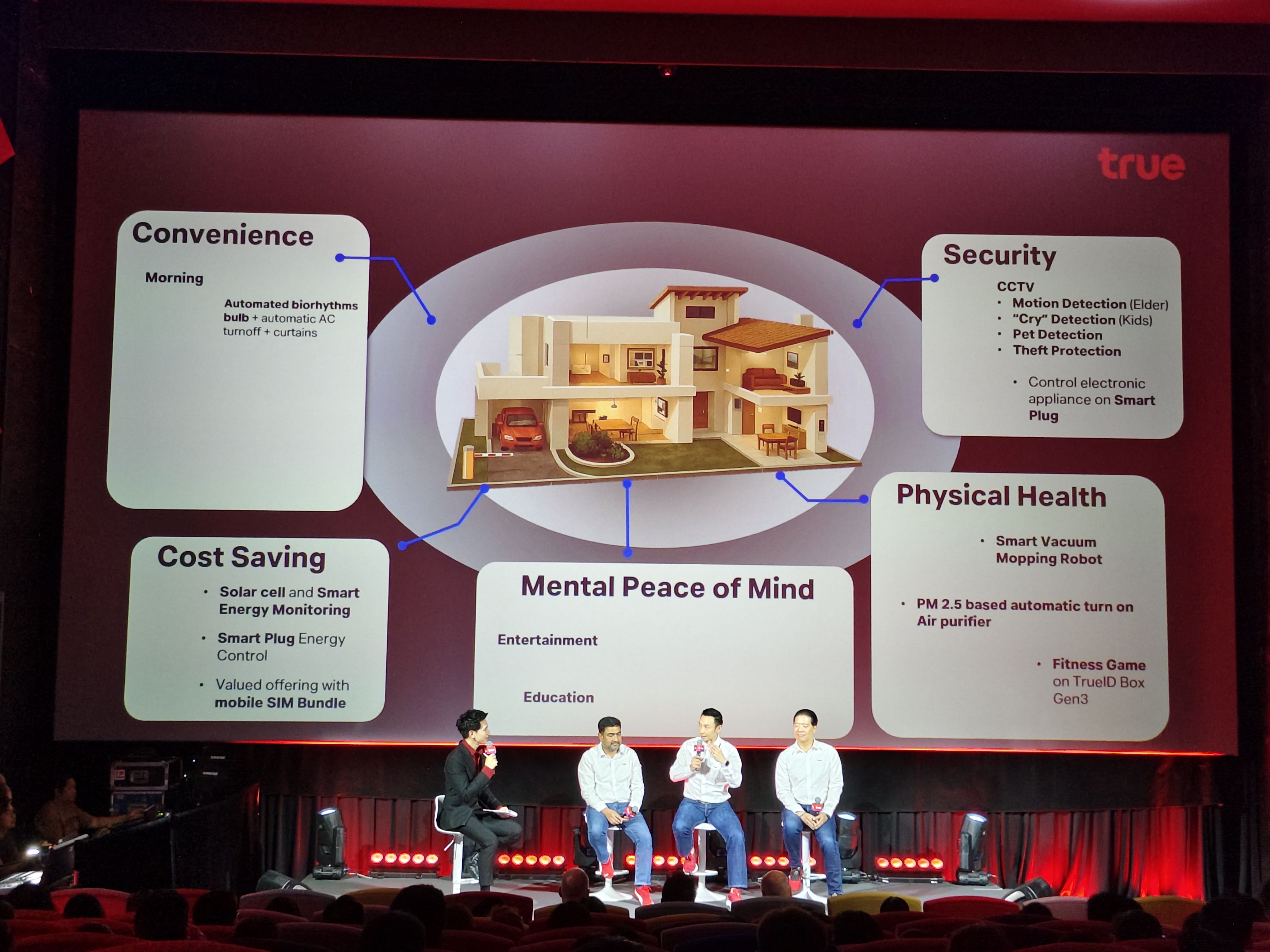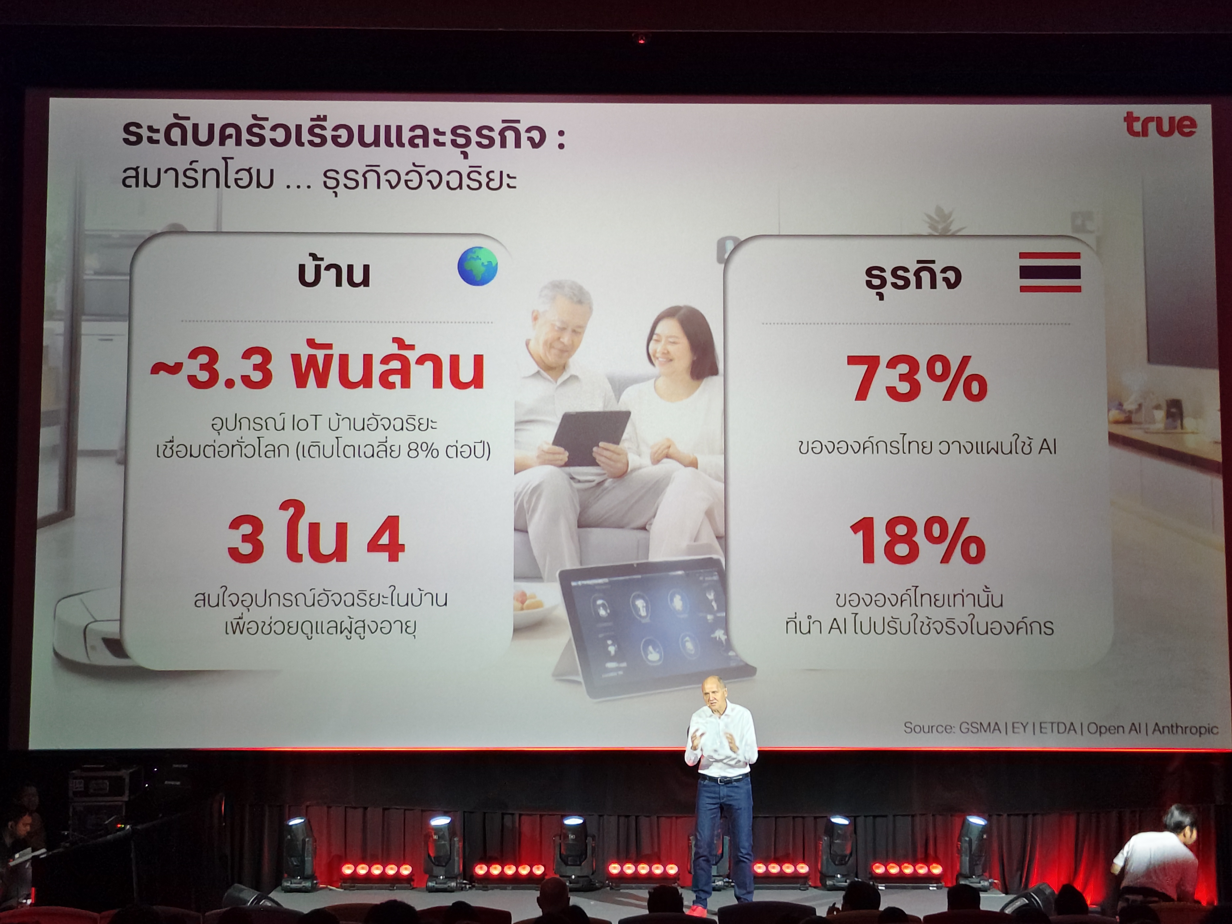 ฐานพล มานะวุฒิเวช ได้ให้รายละเอียดเกี่ยวกับโซลูชันเพื่อชีวิตที่ดีขึ้นว่า ทรูนำ AI เข้ามาดูแลสมาชิกในบ้านอย่างครอบคลุม เช่น