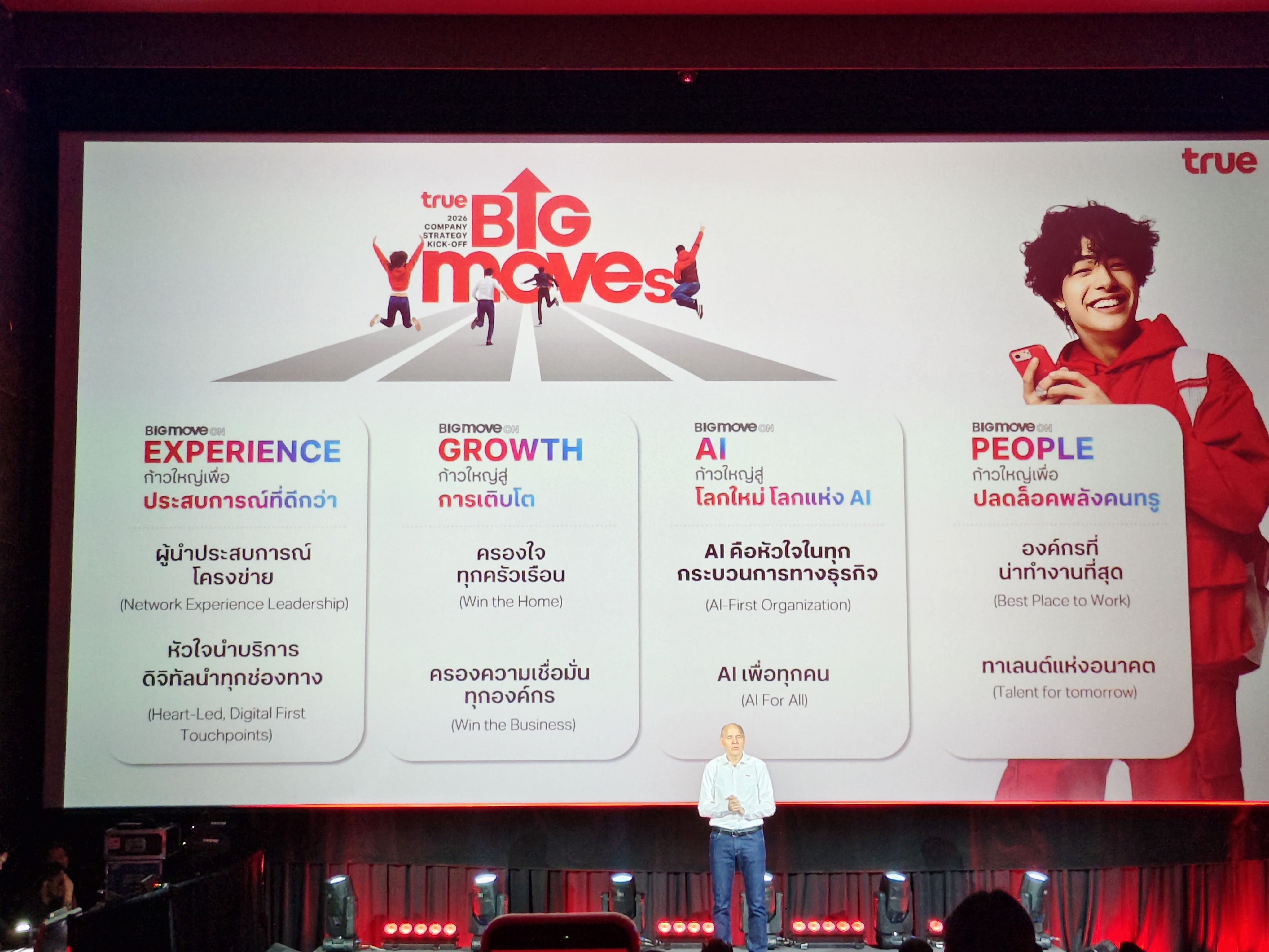 ยุทธศาสตร์ “4 Big Moves” ของทรู คอร์ปอเรชั่น จึงไม่ได้เป็นเพียงแผนการเติบโตทางธุรกิจ แต่เป็นการวางรากฐานสำคัญให้กับการแข่งขันของประเทศไทยในเวทีโลก ด้วยการผสานพลังของเครือข่าย 5G อัจฉริยะ พลังของ AI คอนเทนต์ที่โดนใจ และบุคลากรที่พร้อมรับอนาคต ทรูเชื่อมั่นว่าจะสามารถสร้างคุณค่าใหม่และเป็นกลไกหลักในการขับเคลื่อนเศรษฐกิจดิจิทัลของประเทศให้เติบโตอย่างแข็งแกร่ง