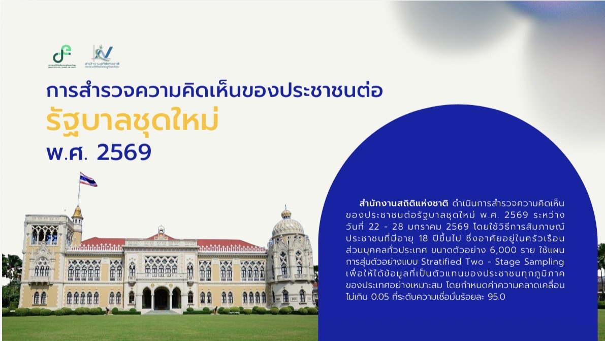 ดำเนินการสำรวจความคิดเห็นของประชาชนต่อรัฐบาลชุดใหม่ พ.ศ. 2569 ระหว่างวันที่ 22