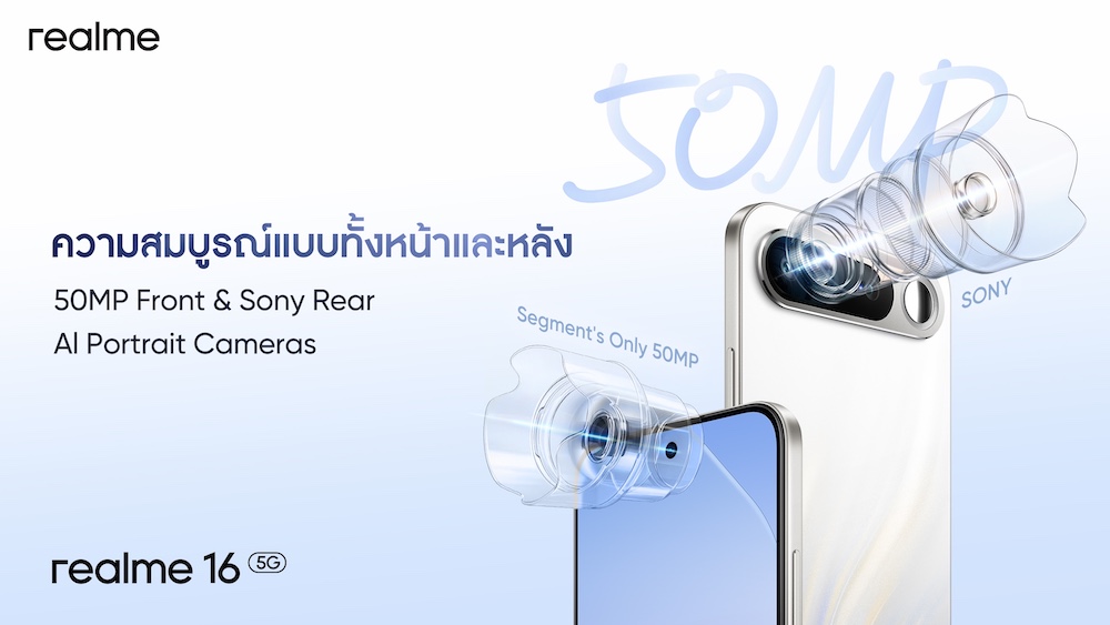 realme 16 5G ความจุ 8/256GB ราคาเริ่มต้น 6,999 บาท