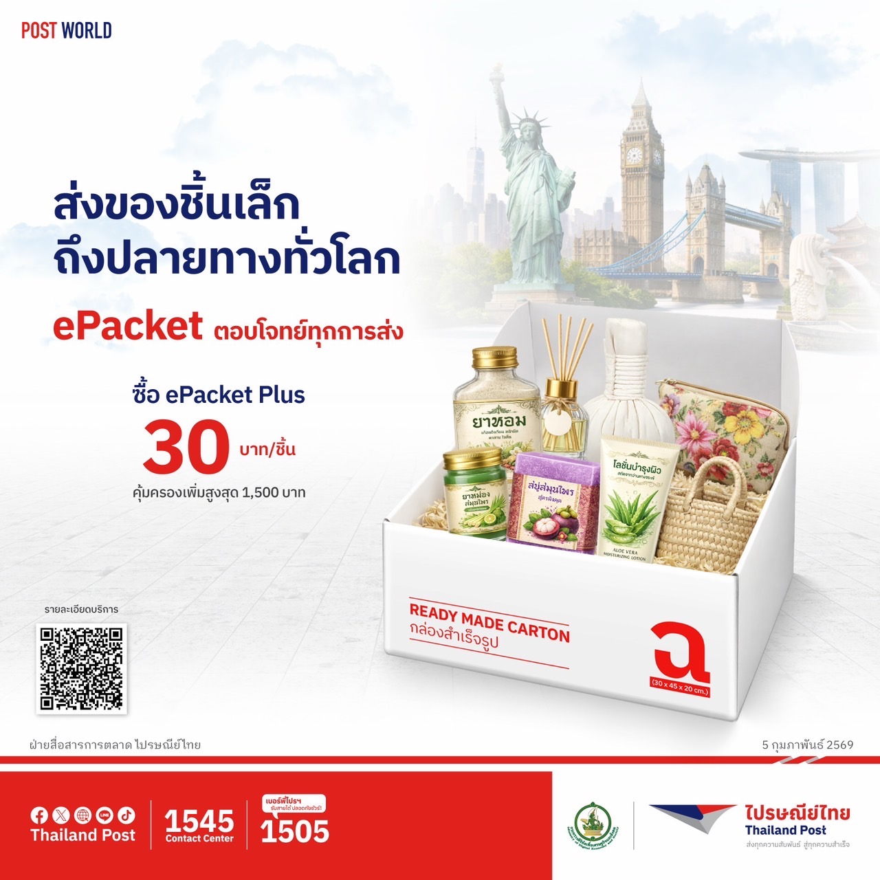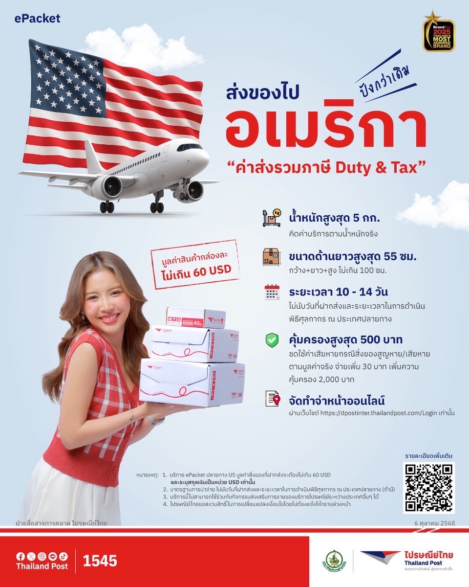 บริษัท ไปรษณีย์ไทย จำกัด เดินหน้ากลยุทธ์ขนส่งระหว่างประเทศ รับมือความท้าทายการค้าโลกยุคใหม่ที่มีการแข่งขันสูงและต้นทุนผันผวน ชู 2 บริการขนส่งระหว่างประเทศ “Courier Post Plus” และ “ePacket” เป็นกลไกสนับสนุนผู้ประกอบการไทย โดยเฉพาะ SME และผู้ค้าออนไลน์ ให้เข้าถึงตลาดต่างประเทศได้สะดวกขึ้น ลดต้นทุนต่อชิ้น เพิ่มความเร็วในการจัดส่ง และเสริมขีดความสามารถในการแข่งขันของสินค้าไทยบนเวทีโลก