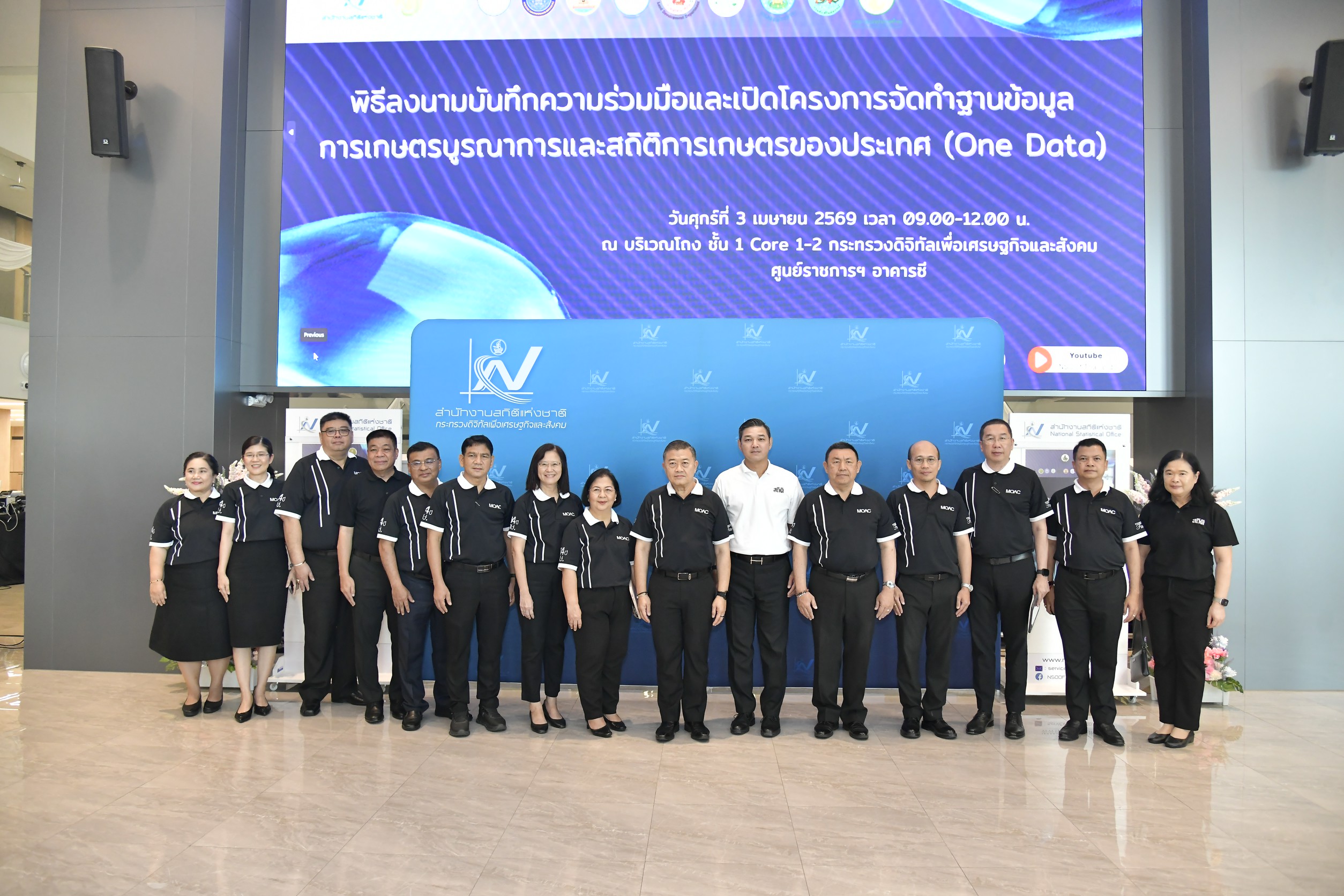 กระทรวงดิจิทัลเพื่อเศรษฐกิจและสังคม โดยสำนักงานสถิติแห่งชาติ ร่วมกับกระทรวงเกษตรและสหกรณ์ จัดพิธีลงนามบันทึกความร่วมมือและพิธีเปิดโครงการจัดทำฐานข้อมูลการเกษตรบูรณาการและสถิติการเกษตรของประเทศ หรือ โครงการ One Data ณ กระทรวงดิจิทัลเพื่อเศรษฐกิจและสังคม แจ้งวัฒนะ กรุงเทพฯ