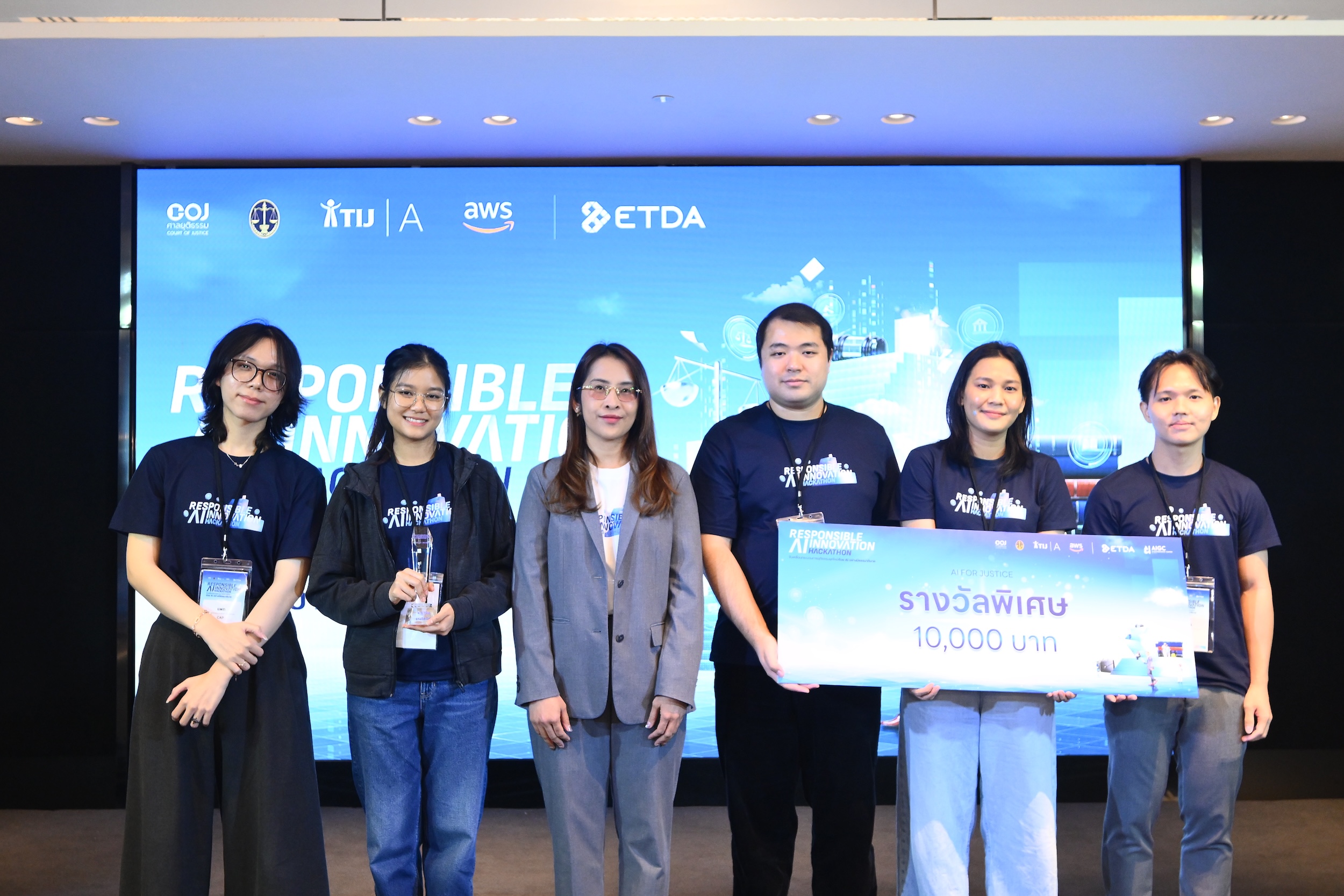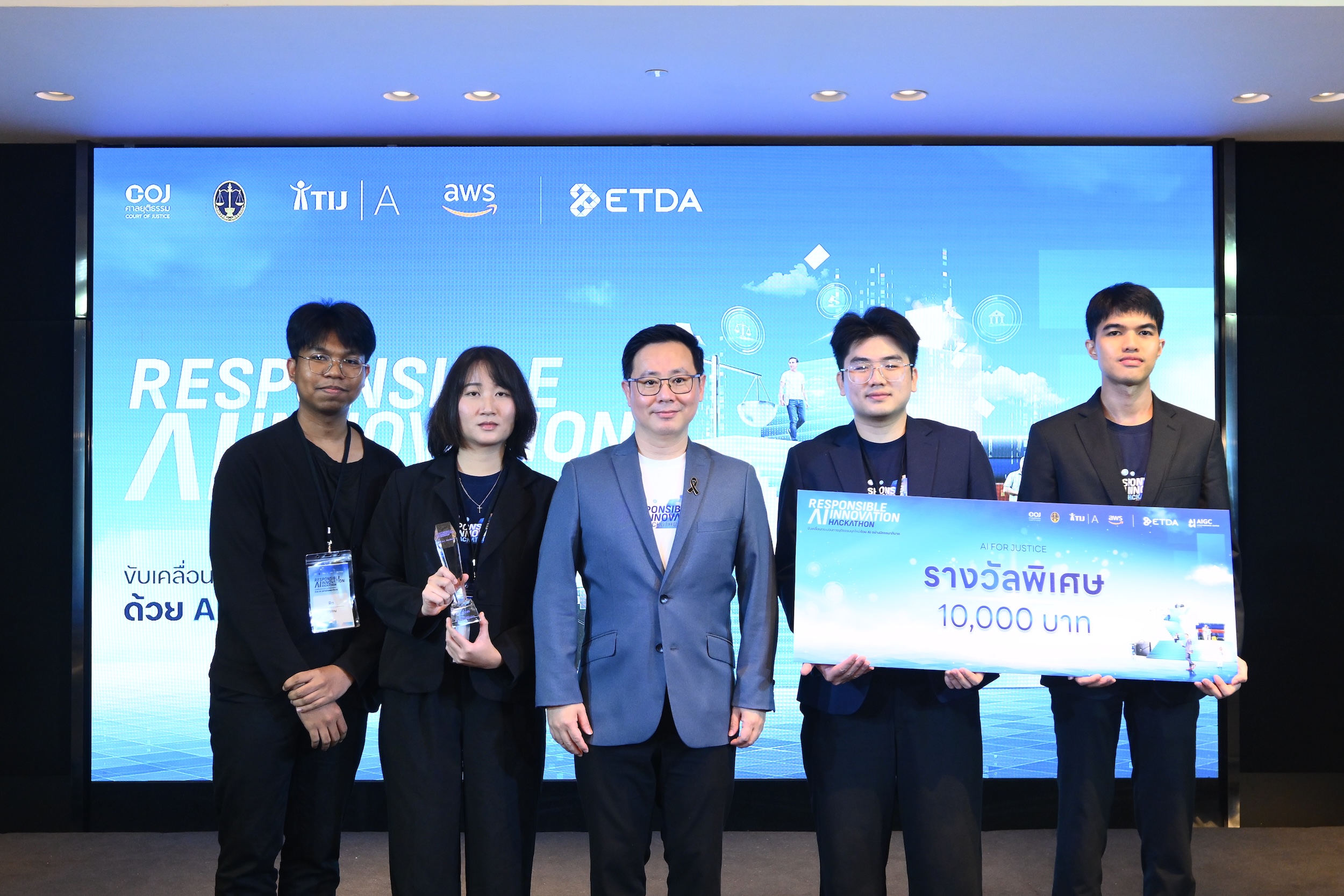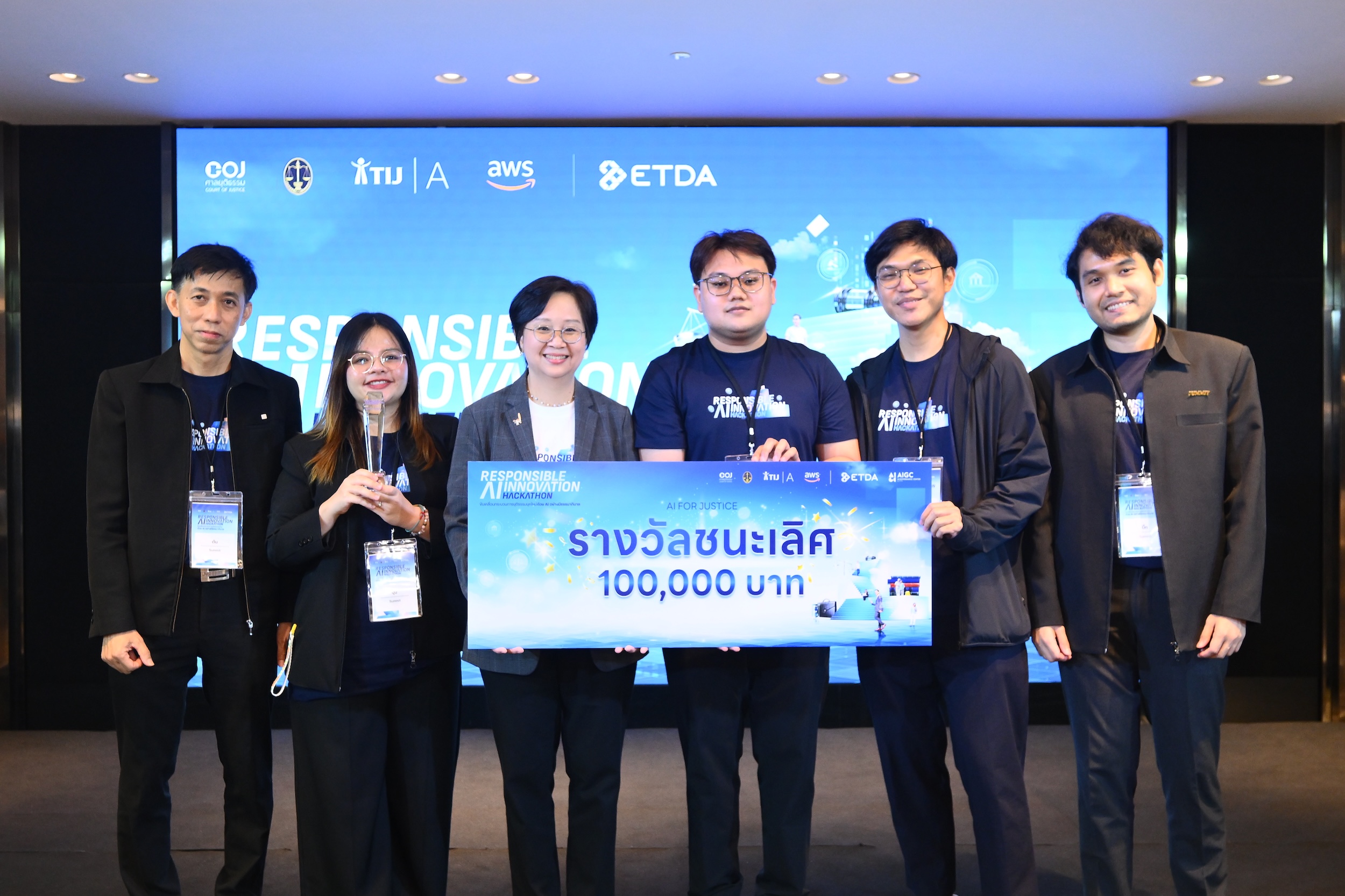 ที่จะเข้ามาช่วยเพิ่มประสิทธิภาพการทำงานของหน่วยงานกระบวนการยุติธรรมให้มีความรวดเร็ว แม่นยำ และสร้างโอกาสให้ประชาชนคนไทยสามารถเข้าถึงกระบวนการยุติธรรมได้อย่างทั่วถึงและเท่าเทียม ภายใต้กรอบธรรมาภิบาลที่น่าเชื่อถือและตรวจสอบได้ โดยทีมที่ชนะในโครงการ Responsible AI Innovation Hackathon ได้แก่ ทีม Summit ผู้ออกแบบนวัตกรรมต้นแบบ แพลตฟอร์ม AI สำหรับแปลงเอกสารคำพิพากษาให้อยู่ในรูปแบบดิจิทัล พร้อมความสามารถในการปกป้องข้อมูลส่วนบุคคล ค้นหา วิเคราะห์ และสรุปแนวคำพิพากษาของศาลได้รับเงินรางวัล 100,000 บาท พร้อมโอกาสการนำเสนอนวัตกรรมบนเวที AI ระดับประเทศ