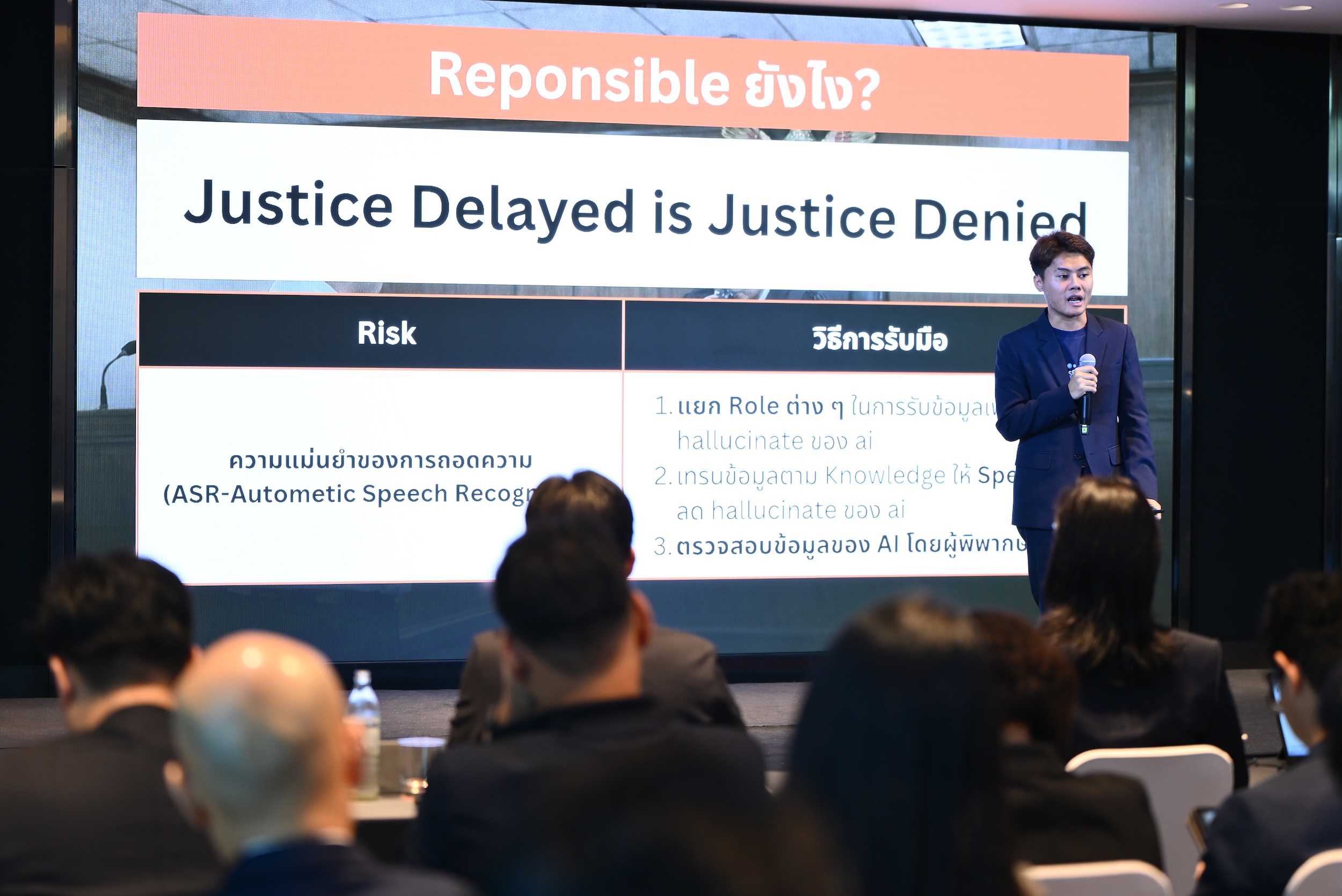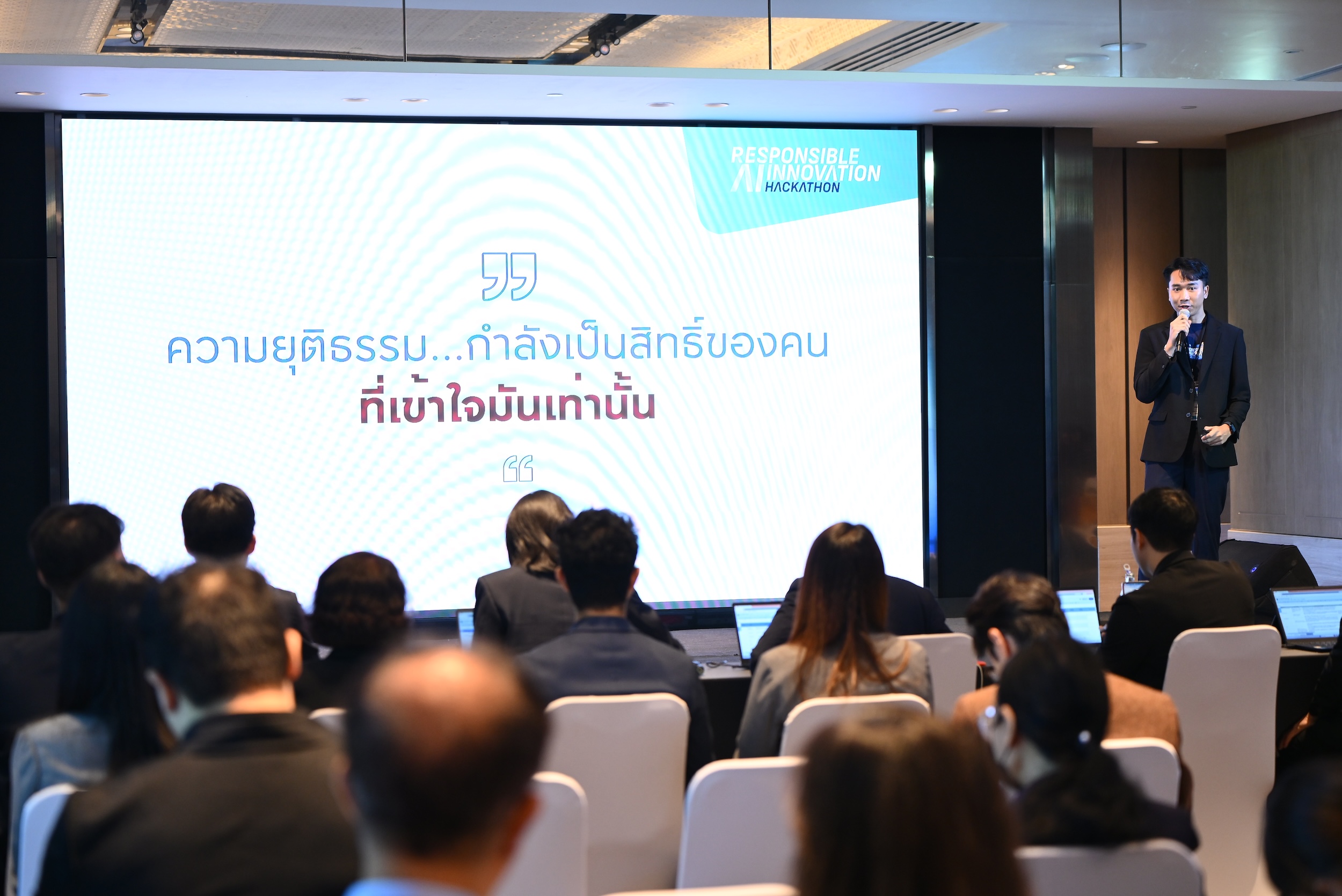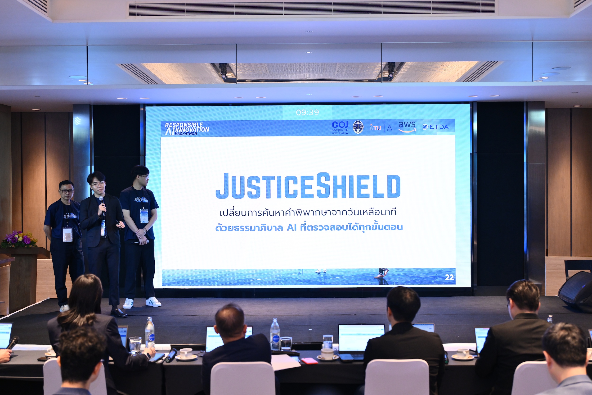 ที่จะเข้ามาช่วยเพิ่มประสิทธิภาพการทำงานของหน่วยงานกระบวนการยุติธรรมให้มีความรวดเร็ว แม่นยำ และสร้างโอกาสให้ประชาชนคนไทยสามารถเข้าถึงกระบวนการยุติธรรมได้อย่างทั่วถึงและเท่าเทียม ภายใต้กรอบธรรมาภิบาลที่น่าเชื่อถือและตรวจสอบได้ โดยทีมที่ชนะในโครงการ Responsible AI Innovation Hackathon ได้แก่ ทีม Summit ผู้ออกแบบนวัตกรรมต้นแบบ แพลตฟอร์ม AI สำหรับแปลงเอกสารคำพิพากษาให้อยู่ในรูปแบบดิจิทัล พร้อมความสามารถในการปกป้องข้อมูลส่วนบุคคล ค้นหา วิเคราะห์ และสรุปแนวคำพิพากษาของศาลได้รับเงินรางวัล 100,000 บาท พร้อมโอกาสการนำเสนอนวัตกรรมบนเวที AI ระดับประเทศ