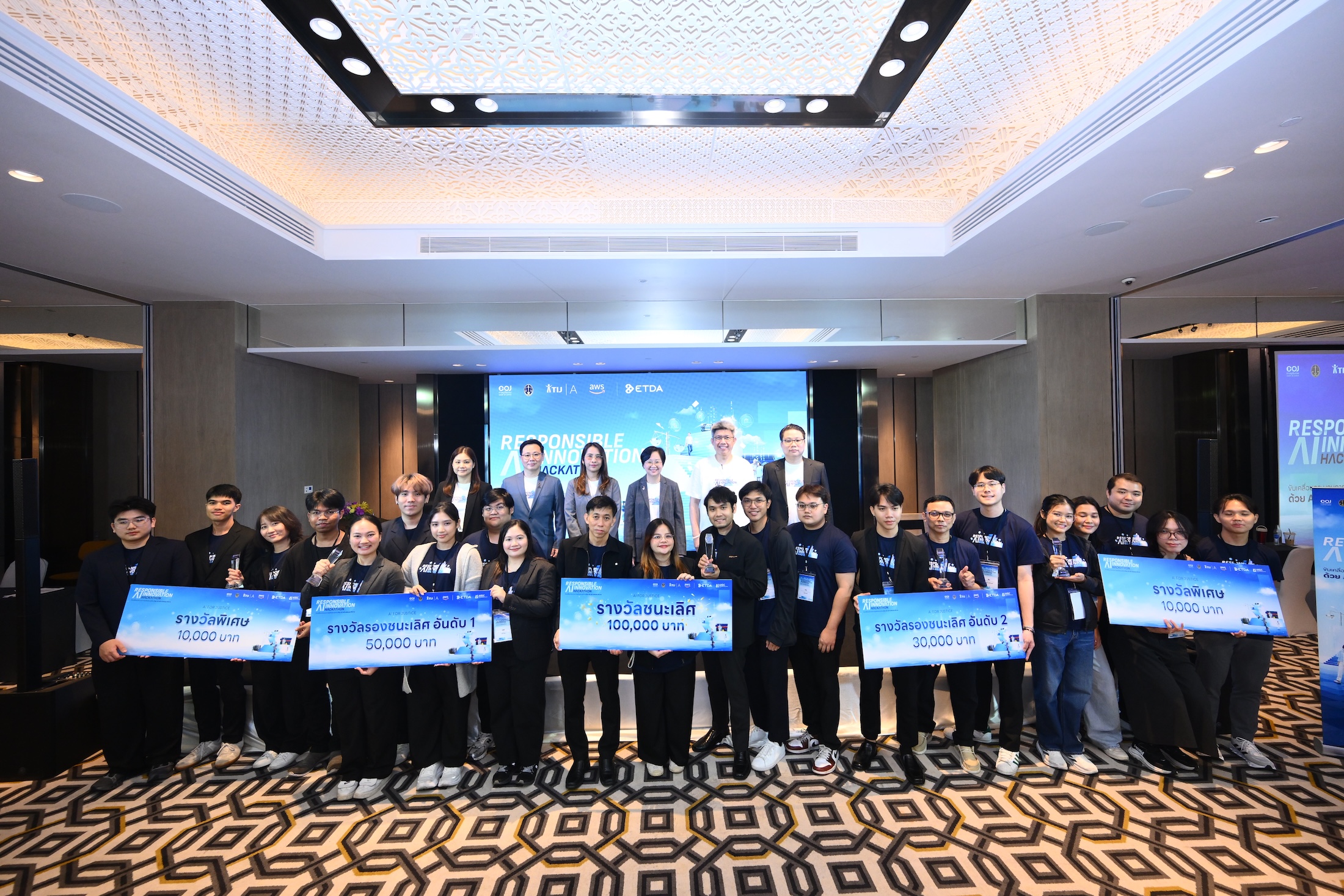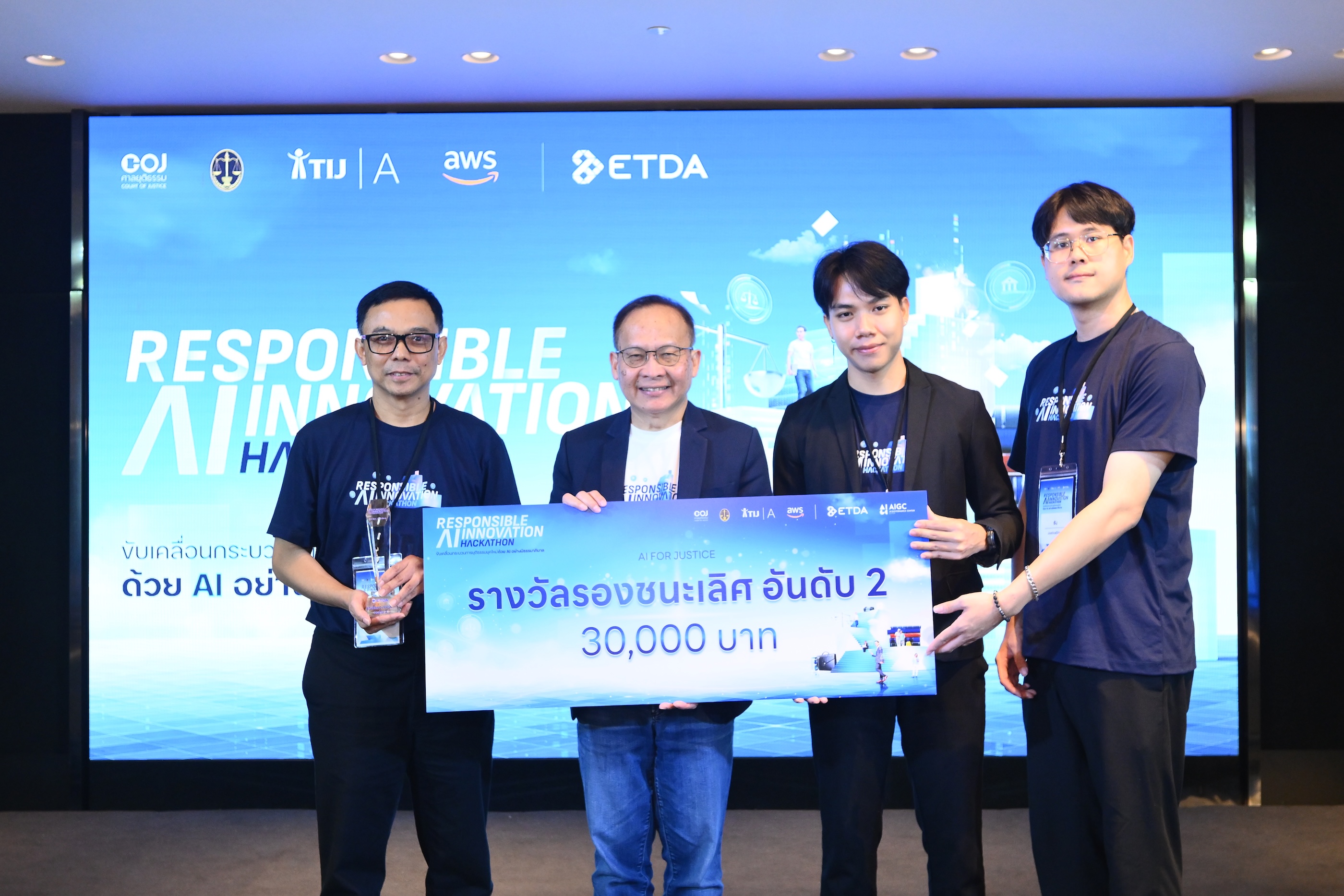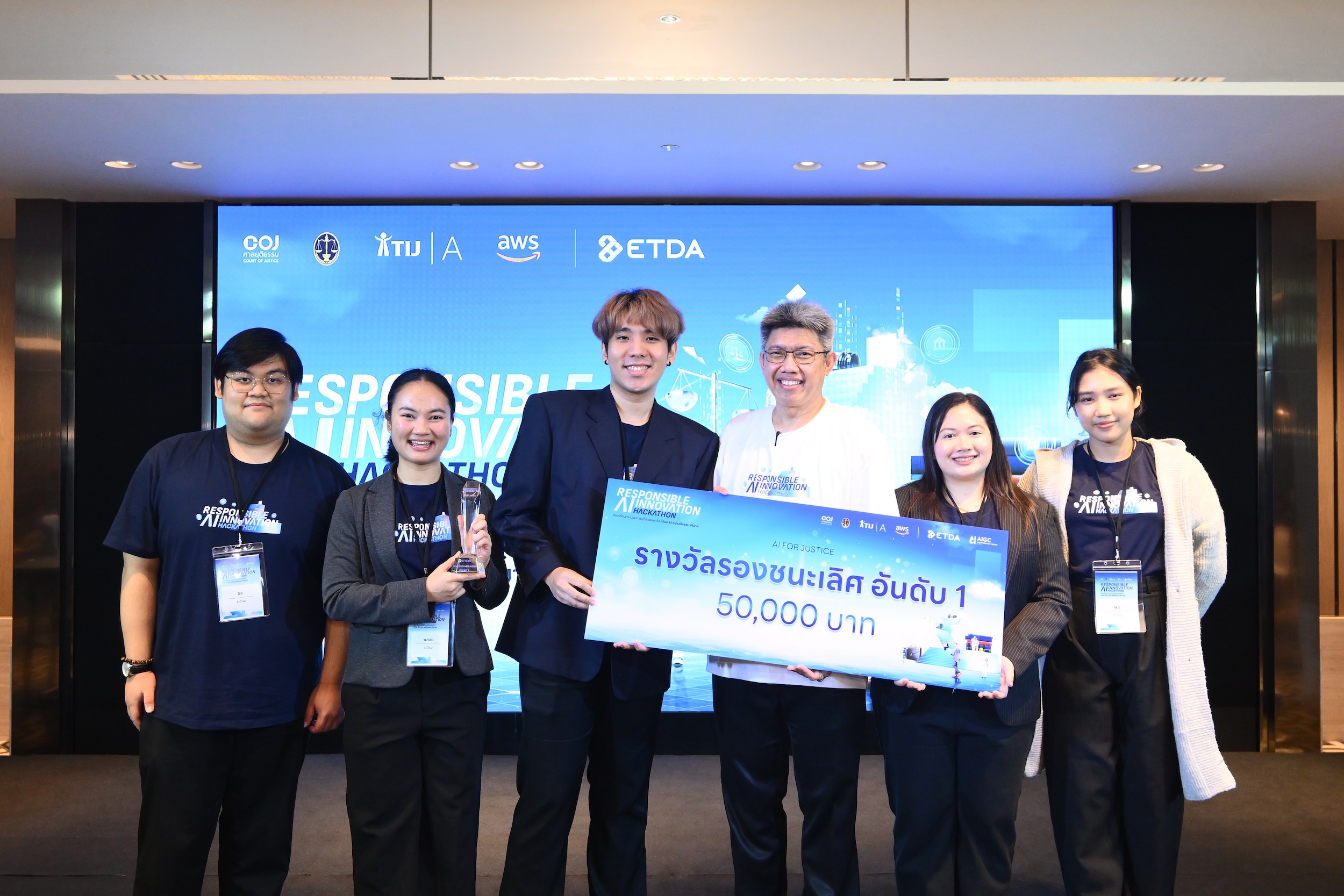สำนักงานพัฒนาธุรกรรมทางอิเล็กทรอนิกส์ (สพธอ.) หรือ ETDA (เอ็ตด้า) โดย ศูนย์ธรรมาภิบาลปัญญาประดิษฐ์ (AIGC) ร่วมกับสำนักงานศาลยุติธรรม สำนักงานศาลปกครอง สำนักพัฒนาบุคลากรเพื่อการยุติธรรม สถาบันเพื่อการยุติธรรมแห่งประเทศไทย (TIJ Academy) และบริษัทอะเมซอน เว็บ เซอร์วิสเซส (AWS) ประเทศไทย จัดกิจกรรมรอบชิงชนะเลิศภายในโครงการ “Responsible AI Innovation Hackathon” ภายใต้โจทย์ “AI for Justice” โดยมีวัตถุประสงค์เพื่อเฟ้นหานวัตกรรมปัญญาประดิษฐ์ต้นแบบ