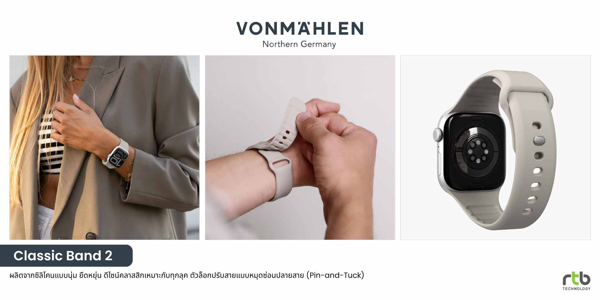 • VONMÄHLEN Classic Band 2 สายสำหรับ Apple Watch ดีไซน์คลาสสิกที่ผสานความเรียบหรูและฟังก์ชันการใช้งานอย่างลงตัว ผลิตจากซิลิโคนรีไซเคิลคุณภาพสูง