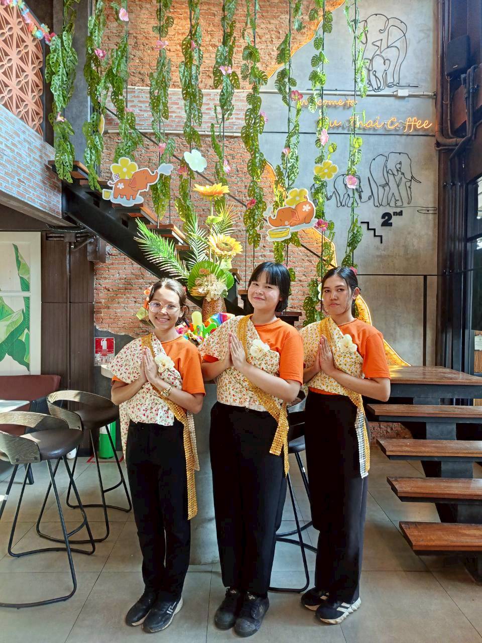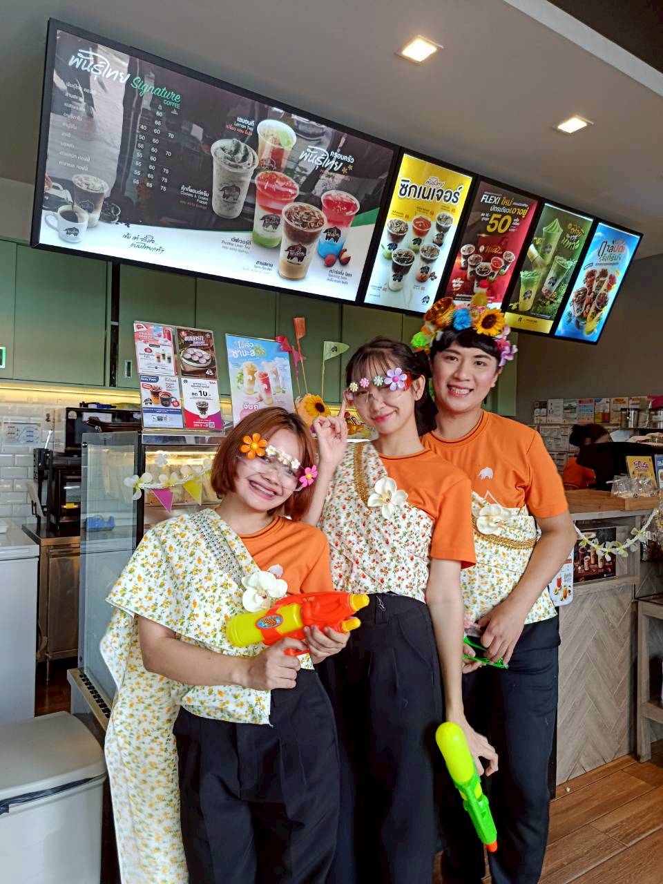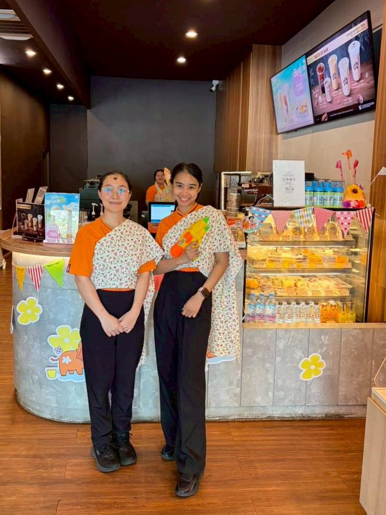 เพียงก้าวเข้ามาที่ร้านกาแฟพันธุ์ไทย คุณจะพบกับการต้อนรับแสนอบอุ่นในบรรยากาศ ที่พนักงานพร้อมใจกันห่มสไบ สร้างสีสันรับเทรนด์ไทยนิยม พร้อมการตกแต่งร้านในธีมเทศกาลสงกรานต์แบบไทยๆ ให้คุณได้ Snap & Share คอนเทนต์ลงโซเชียลได้แบบฉ่ำๆ ตลอดการเดินทาง