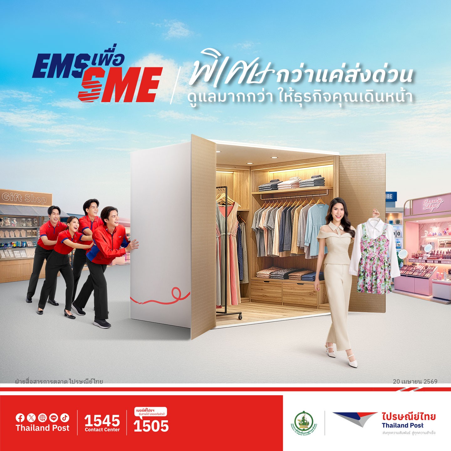 “ไปรษณีย์ไทยตอกย้ำบทบาทพันธมิตรธุรกิจ “EMS เพื่อ SME” ผ่าน 3 มิติความพิเศษกว่าแค่ส่งด่วน พิเศษด้วยความเข้าใจ ด้วยกลยุทธ์ “Parcel Defined Logistics” ที่ออกแบบระบบขนส่งให้เหมาะสมกับพัสดุทุกรูปแบบ ทั้งสินค้าชิ้นเล็กอย่างเครื่องสำอาง เสื้อผ้า รองเท้า สินค้าชิ้นใหญ่หรือมีน้ำหนักมาก อย่างเฟอร์นิเจอร์ เครื่องใช้ไฟฟ้า หรือสินค้ามูลค่าสูง อย่างเครื่องประดับ พระเครื่อง มือถือ แท็บเล็ต ตลอดจนผลไม้ ต้นไม้ หรือแม้กระทั่งสิ่งมีชีวิต เช่น สัตว์น้ำสวยงาม พิเศษด้วยความใส่ใจ ให้ความสำคัญกับทุกขั้นตอนในการส่งมอบคุณภาพบริการที่ดีที่สุด ผ่านพนักงานมืออาชีพที่ดูแลพัสดุทุกชิ้นด้วยความเข้าใจว่าพัสดุทุกกล่องไม่ใช่เพียงแค่สินค้า แต่ยังคือความตั้งใจที่ผู้ประกอบการบรรจงคัดสรรและส่งมอบให้กับลูกค้า พิเศษด้วยความเข้าถึง ด้วยเครือข่ายไปรษณีย์ครอบคลุมพื้นที่ทั่วประเทศ แม้ในพื้นที่ห่างไกล ทำให้ผู้ประกอบการให้สามารถเข้าถึงลูกค้าได้อย่างไร้ขีดจำกัด นอกจากนี้ยังมีบริการ EMS World ส่งด่วนทั่วโลกเชื่อมโยง SME ไทยให้เข้าถึงโอกาสทางการค้าในระดับโลกได้อย่างไร้รอยต่อ”