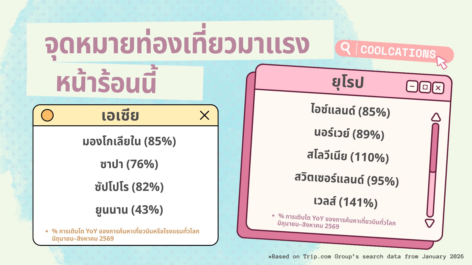 อ้างอิงจากข้อมูลการค้นหาของ Trip.com Group เดือนมกราคม 2569