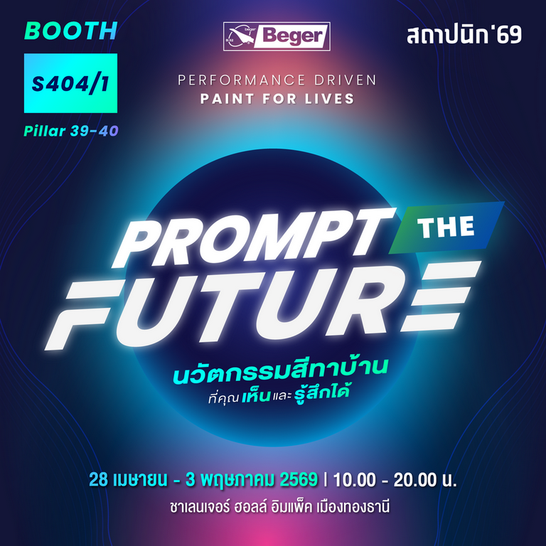 บริษัท สีเบเยอร์ จำกัด ตอกย้ำความเป็นผู้นำด้านนวัตกรรมสีระดับประเทศ สร้างปรากฏการณ์ใหม่ในงานสถาปนิก’69 ด้วยการประกาศจุดยืน “No.1 Coating Innovation Brand” พร้อมเปิดตัวบูธภายใต้แนวคิด “Prompt the Future” ที่ผสานพลังของ Innovation และ Sustainability อย่างเป็นรูปธรรม ยกระดับมาตรฐานงานอีเวนต์สู่ Zero Waste Design อย่างเต็มรูปแบบ ระหว่างวันที่ 28 เมษายน – 3 พฤษภาคม 2569 ณ ชาเลนเจอร์ ฮอลล์ อิมแพ็ค เมืองทองธานี