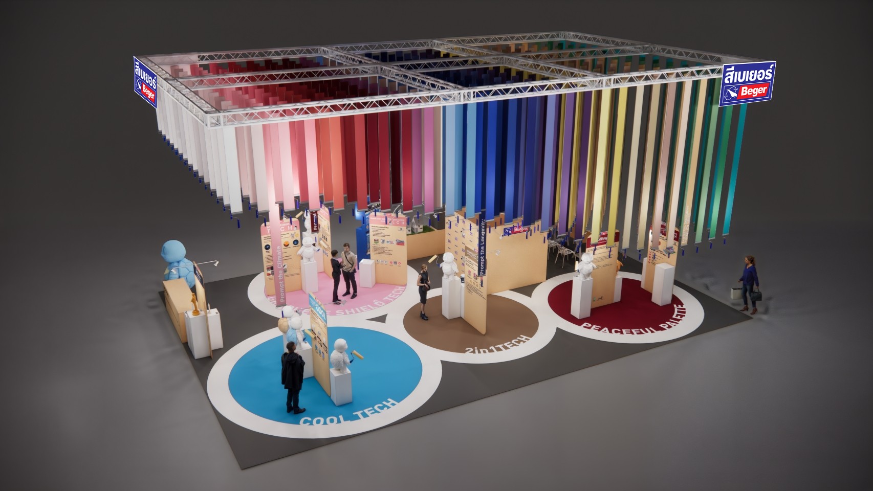 ภายใต้แนวคิด Sustainable Ecosystem เบเยอร์ออกแบบบูธโดยคำนึงถึงทั้งระบบ ตั้งแต่การเลือกใช้วัสดุ การผลิต การขนส่ง การติดตั้งแบบลดฝุ่น ไปจนถึงการจัดการหลังจบงาน เพื่อมุ่งสู่ Zero Event Waste และลด Carbon Footprint อย่างเป็นรูปธรรม สะท้อนบทบาทผู้นำที่ไม่ได้มองเพียงผลิตภัณฑ์ แต่ยกระดับทั้ง “ระบบของอุตสาหกรรม”