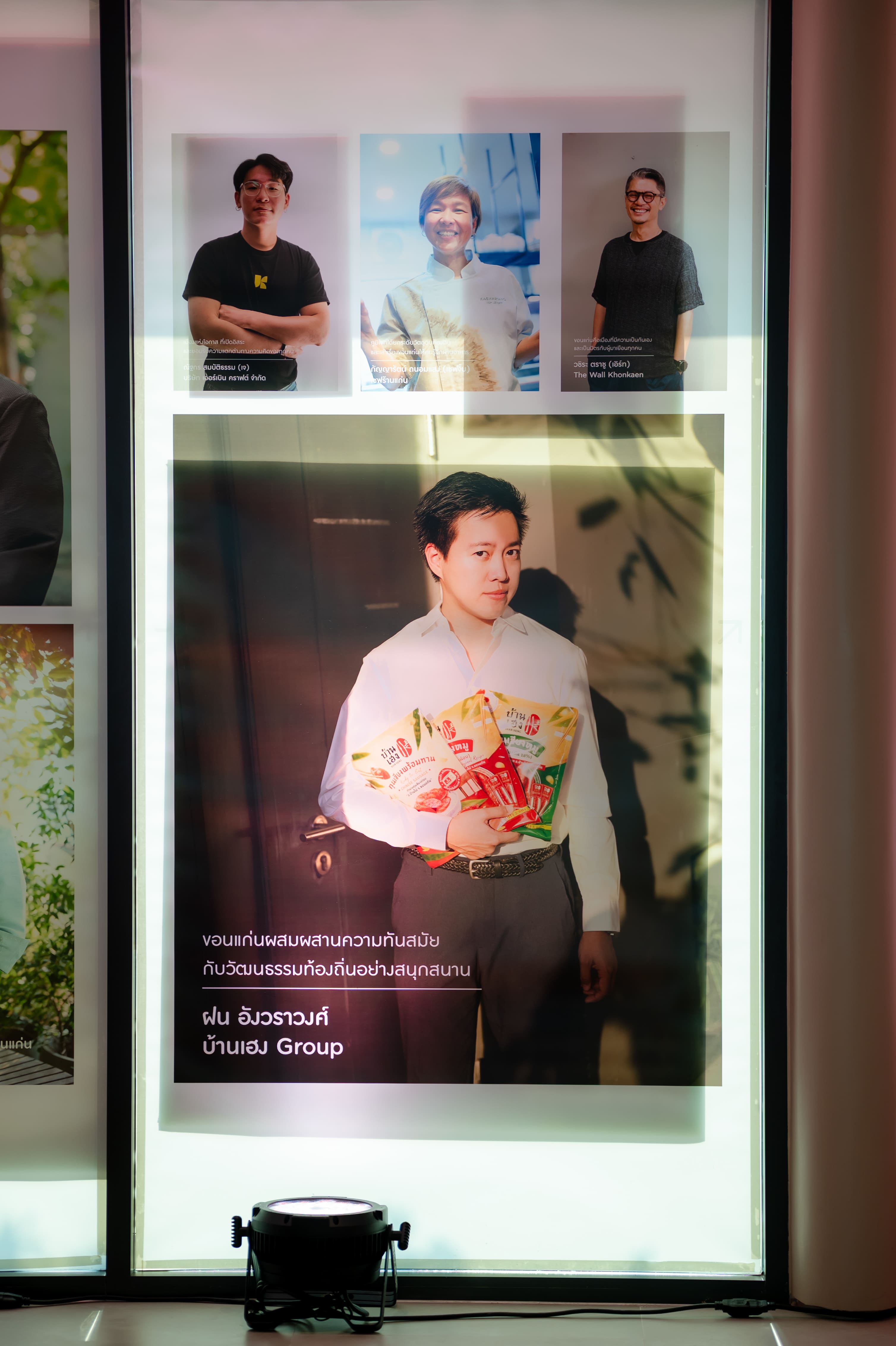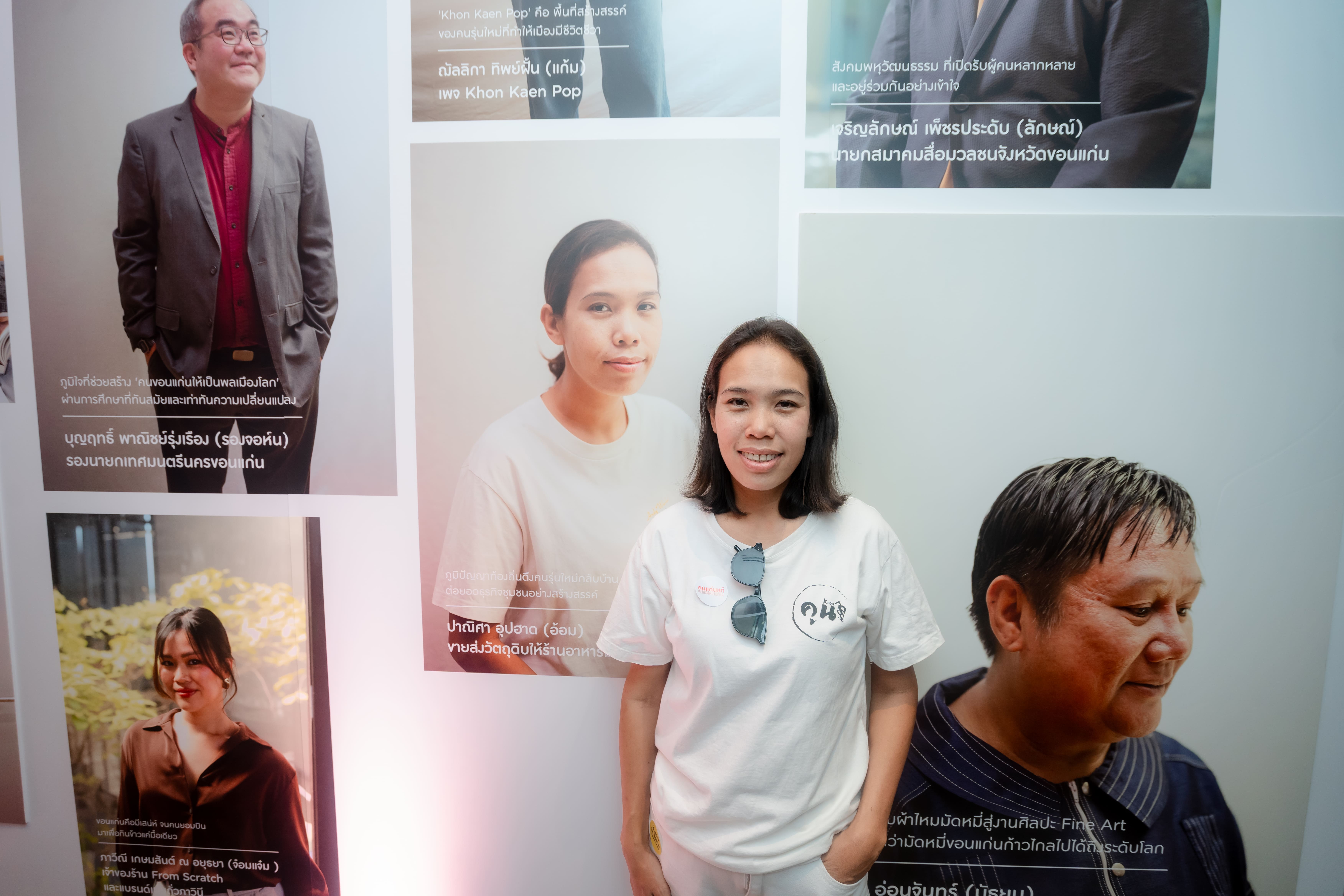 นิทรรศการครั้งนี้ ได้รวบรวมบุคคลผู้เป็นดั่งฟันเฟืองสำคัญในการขับเคลื่อนและถักทอเรื่องราวการพัฒนาเมืองขอนแก่นอย่างยั่งยืนมากกว่า 100 ชีวิตจากหลากหลายสาขาวิชาชีพทั้งแพทย์ ดีไซเนอร์ เชฟ นักปรุงสุรา นักพัฒนาการเกษตร นักการเมือง นักการตลาด ไปจนถึงศิลปินหมอลำและเหล่านักขับเคลื่อนนโยบาย มาร่วมถ่ายทอดจิตวิญญาณแห่งจังหวัดขอนแก่น อาทิ คุณพ่อสวาท อุปฮาด ผู้บุกเบิกและยกระดับสุราพื้นบ้านสู่สาโทแบรนด์คูน, เชฟคำนาง-ณัฏฐภรณ์ คมจิต ลูกหลานชาวอีสานที่นำเสนออาหารอีสานผ่านสำรับ “พาข้าว” ยกระดับวัตถุดิบและภูมิปัญญาอีสานสู่สากล, อ้อม-ปาณิศา อุปฮาด ผู้ริเริ่ม “ตลาดสีเขียวขอนแก่น”, โจอี้ ศรีเมืองขอน อินฟลูเอนเซอร์ท้องถิ่น, เชฟไพศาล ชีวินศิริวัฒน์ และเชฟจิ๊บ-กัญญารัตน์ ถนอมแสง จากร้าน “แก่น” ร้านอาหาร Michelin Guide (บิบ กูร์มองด์), กิตติ สิงหาปัต ผู้ประกาศข่าวผู้ใช้พื้นที่ข่าวเพื่อยกระดับภูมิปัญญาท้องถิ่นและขับเคลื่อนเศรษฐกิจชุมชนอย่างยั่งยืน, คณะหมอลำระเบียบวาทศิลป์ ศิลปินมรดกอีสานชื่อดัง เป็นต้น พร้อมด้วยบุคคลผู้มีส่วนร่วมในการพัฒนาจังหวัดขอนแก่นอีกมากมาย